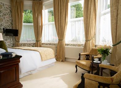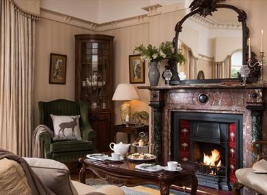 Lounges - The stained glass front door leads into our reception hall, welcomed by the roaring fire, original wall hangings and the grand piano. With original working fireplaces throughout its your choice whether you relax in the drawing room with its high ceilings, decorative cornicing and bookcases, or to unwind in the bar lounge with its extensive wine list and comprehensive array of local (and not so local) spirits, beers and aperitifs.