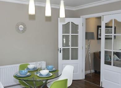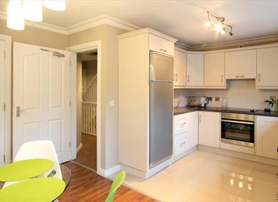 Our Luxurious KC House is a furnished three-bedroom home on three floors situated in the quaint town of Dungannon of Northern Ireland. The home offers full amenities, three bathrooms, and a peaceful space for relaxing and taking in the local sights. Luxurious KC House is suitable for families or business travellers, up to five people, at an affordable price for a few days or several weeks.The ground floor of the house includes an office and reception area where visitors are welcomed and given a tour on their first day. This floor also offers a laundry/utility room complete with a washing machine, clothes dryer, and ironing supplies. The second floor includes an open floor plan, gourmet kitchen with all new appliances, and a separate dining room and furnished living room set off with french doors for added privacy. The third floor includes three cozy bedrooms, a small office area, and a family bathroom supplied with all of the essentials.