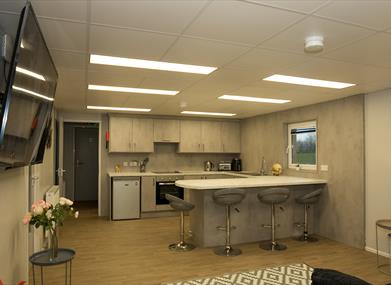 Each lodge cabin has its own private parking area, away from the main dwelling. All accommodation has a fridge freezer, microwave, stovetop, toaster & kettle for your own self-catering needs (along with cookware, crockery & utensils). We also provide complimentary tea, coffee. Bedlinen & towels are included. Also Flat Screen TV in the main living area & bedrooms.