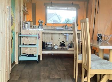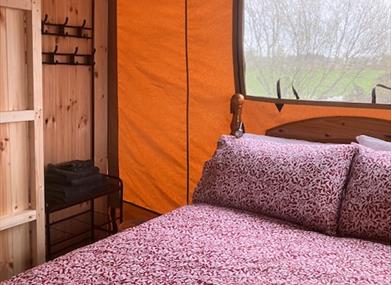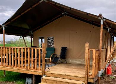 You won’t forget the peaceful surroundings of this rustic destination. Set in the Mid Ulster area, central to all of N. Irelands favourite tourist destinations, with the Sperrin mountains in the distance. A cosy two bedroom Safari Tent with small WC for those middle of the night emergences, large covered veranda for relaxing and watching the sun go down, with a full outdoor shower with rain fall shower head and WC. An outdoor kitchen equipped with gas BBQ,and not lets forget the fire pit.