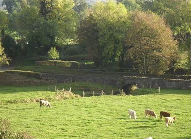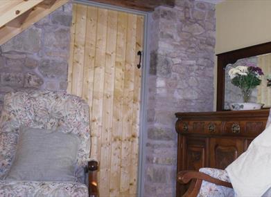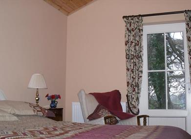The newly renovated barn in a restful setting has stunning views over the historic town of Clogher and Slieve Beagh. It retains much of the original stonework, but has been tastefully furnished and fully equipped to provide comfortable accommodation for 4/5 people.Downstairs has an open plan living area, a double room and bathroom. Upstairs has a twin room with en suite. Full central heating and a wood burning stove are provided. French windows open onto a terrace with seating. Children are free to play on the lawns. The living area offers T.V. and free WiFi, with books and an electric organ on the gallery.