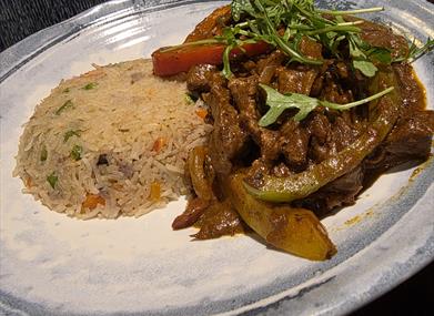 Our local supplier, McAtamney’s, fillet steak strips, stir-fried and blended with Kadi sauce and rice for a fusion of local and Indian flavours.