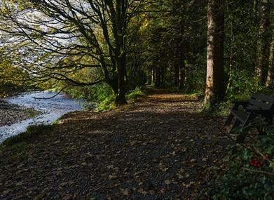 The walk is an easy stroll and comprises of a stoned pathway among native and coniferous woodland and riverside. Follow the green and yellow waymarkers from the car park, completing the walk in an anticlockwise direction. The woodland is a mix of planted Noble Fir, Oak and Beech with a natural understorey of Bramble, Holly, Ivy and Wood Sorrel. The wood has a good ground flora with woodland plants being present including Wood Anemone, Primrose, Buttercup and a variety of fungi. It is host to a range of bird species alongside bats, grey squirrel, fox and badger. The close proximity to the river greatly enhances the biodiversity which offers fine views of the river and the ‘big bridge’ Derrynoid Bridge.