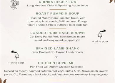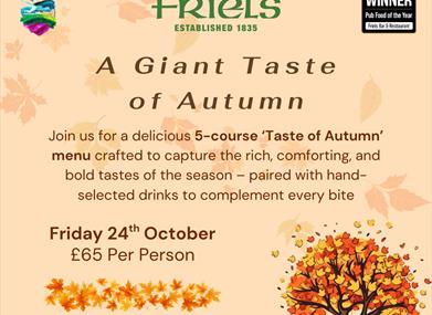 Join us for a delicious 5-course 'Taste of Autumn' menu crafted to capture the rich, comforting and bold tastes of the season - paired with hand selected drinks to compliment every bite.
