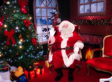 Visit Santa and his elf in his enchanting Christmas grotto, take your own family photos and receive a small gift.